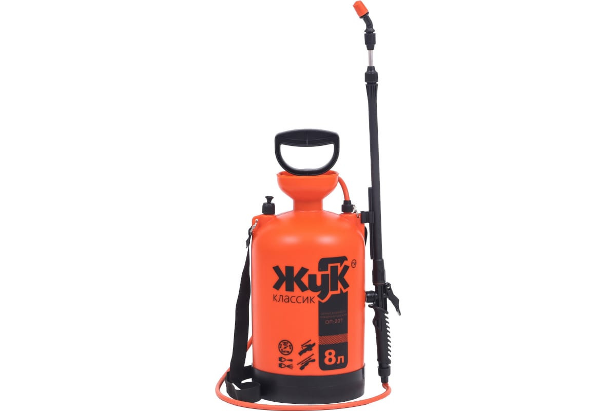 Опрыскиватель Жук Cicle ОП-207 8 л 4607156360444 применяется на садовом участке или в оранжерее для бережного полива растений или внесения жидких удобрений. Также может применяться для распыления чистящего средства при мытье стен, окон.