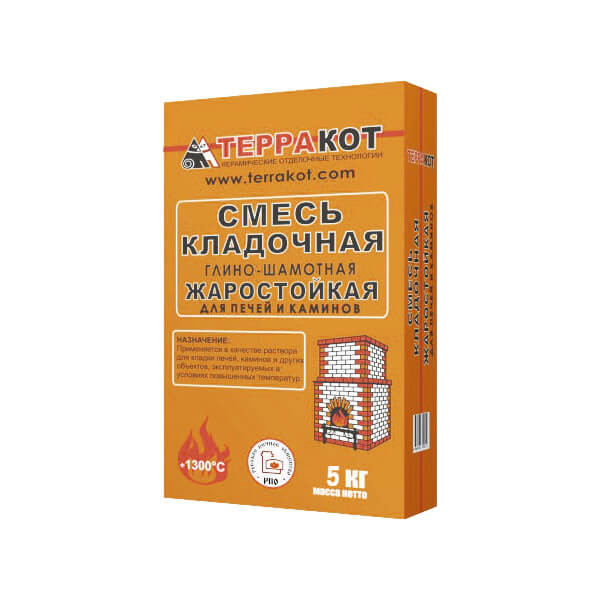 Жаростойкая кладочная смесь "Терракот» - готовый состав для обеспечения высококачественной и надежной кладки кирпичей в топочных и иных горячих зонах нагреваемых объектов (печей, каминов, мангалов, барбекю, дымоходов).