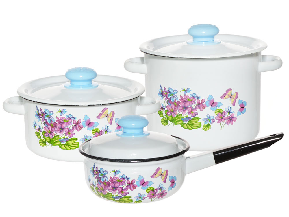 Набор кастрюль "Фиалки" №26 (2л, 3,5л, ковш с крышкой 1,5л) N26B24