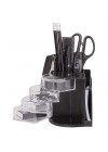 Настольный набор STAFF "Веер" позволяет эффективно и эргономично организовать рабочее место. Компактная раскрывающаяся подставка изготовлена из пластика и имеет 6 отделений. В наборе 13 предметов: - подставка; - ножницы; - канцелярский нож; - шариковая...