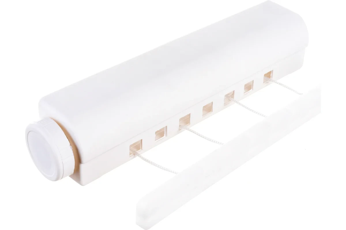 Выдвижная настенная сушилка для белья Рыжий кот WCD-20 3.66 м 4 веревки пластик 998395 позволяет удобно просушить одежду после стирки.