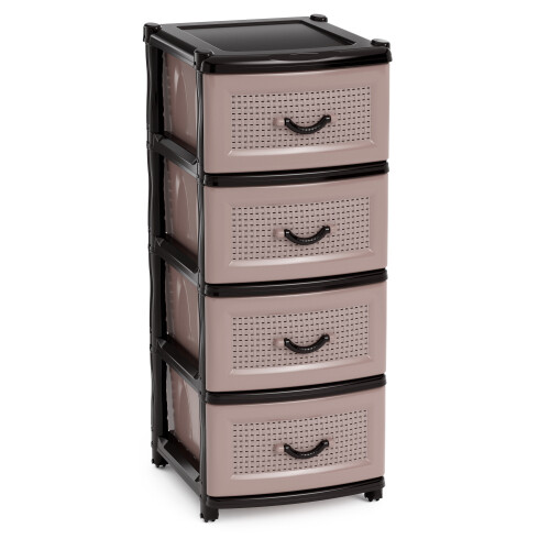 Современный и функциональный комод заслужено пользуется большой популярностью среди наших покупателей. Изделие способно гармонично вписаться в интерьер любой комнаты. Комод произведен из высококачественного и безопасного полипропилена. При производстве используется только сертифицированное и экологически чистое, качественное сырье отечественных и зарубежных производителей. Данное изделие произведено на современном технологичном оборудовании, а потому отличается прочностью и устойчивостью разнообразным механическим воздействиям. Также особую прочность изделию придает цельная конструкция перегородок. Оригинальный внешний вид задает плетёная лицевая часть выдвижного ящика. Комод имеет четыре выдвижных ящика большой вместимости, в которых будет очень удобно хранить личные вещи и другие принадлежности. Благодаря небольшому весу, комод очень легко передвигается. Комод упаковывается в индивидуальную упаковку, где каждый клиент сможет найти инструкцию по сборке.