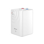Малолитражный накопительный водонагреватель с компактной формой можно установить над и под раковину, спрятать в нишу или шкаф.