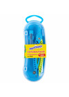 В состав готовальни входят 2 предмета: - циркуль; - пенал с запасным грифелем. Циркуль длиной 120 мм с несгибаемыми штангами изготовлен из пластика. Цвета - голубой и салатовый. Поставляется в пластиковом пенале с прозрачной крышкой и с европодвесом.