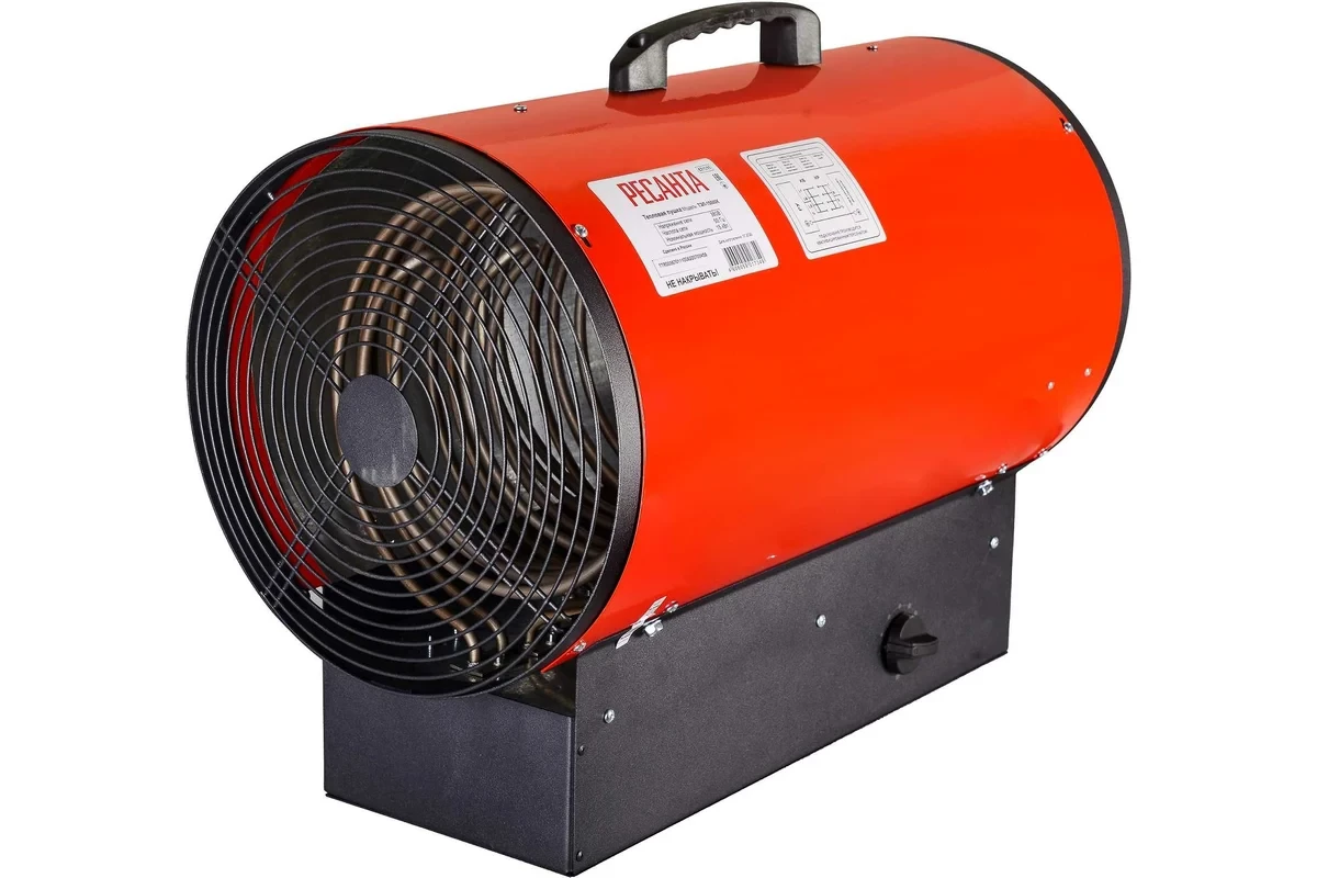 Круглый корпус электрической тепловой пушки Ресанта ТЭП-15000К выполнен из прочного металла, устойчивого к механическим повреждениям. Удобная ручка-держатель обеспечивает удобство транспортировки. Специальная подставка гарантирует надежное размещение на любой поверхности.