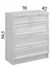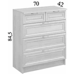 Комод имеет размеры 70 см в ширину, 84,5 см в высоту и 42 см в глубину. Вес комода составляет 53 кг.