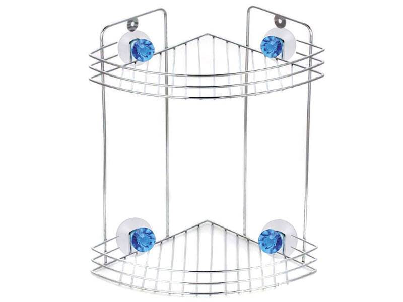 Полка угловая двухъярусная материал: хромированный металл размер:19*19*29 см Вес: 0,5 кг максимальная нагрузка: 3 кг крепление: 4 присоски Бриллиант синий