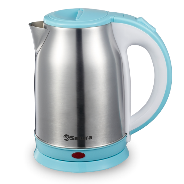 Электрочайник Sakura SA-2147BL выполнен в прочном корпусе из нержавеющей стали и пластика. Мощность модели составляет 1800 Вт. Объема емкости в 1,8 л достаточно для большой компании. Подставка вращается на 360°.