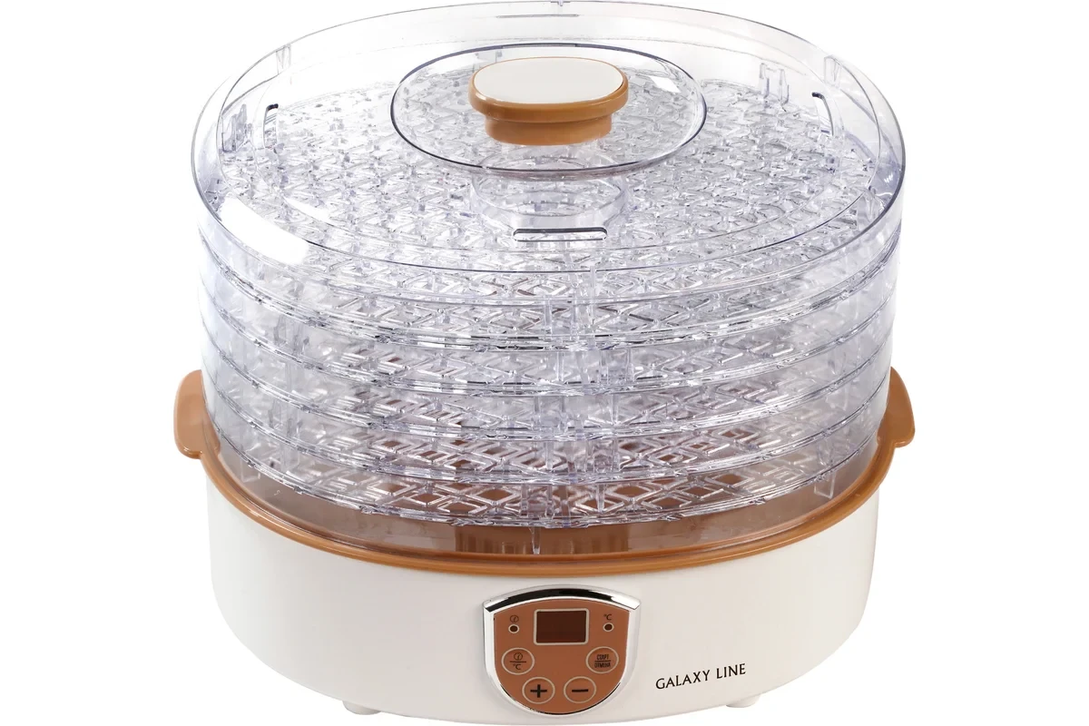 Процесс сушки происходит в компактных и защищенных от пыли поддонах. 5 поддонов регулируются по высоте, что удобно для одновременной сушки различных по объему и габаритам продуктов. Поддоны изготовлены из прозрачного первичного пищевого пластика, поэтому не впитывают запах, не меняют цвет и вкус продуктов, не окрашиваются, равномерно просушивают продукты.