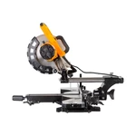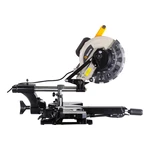 -Подвижная пильная голова с двойной направляющей и диск большого диаметра позволяют обрабатывать крупные заготовки за счёт маятникового хода и линейного перемещения