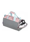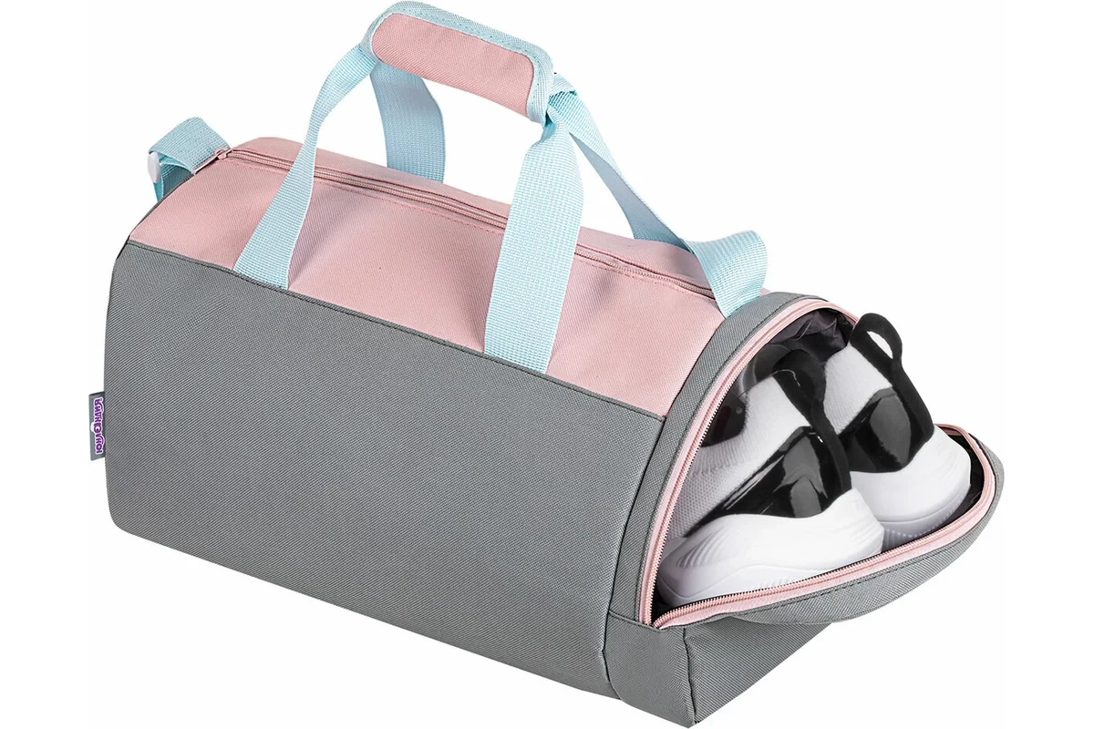 Основное отделение – с внутренним карманом на молнии, дополнительное боковое отделение на молнии предназначено для обуви. Лямка через плечо регулируется по длине, ручки имеют удобную плотную подушечку для переноски. Функциональные бегунки позволяют без усилий открывать сумку. Кроме того, сумка может выдерживать большие нагрузки благодаря усиленному дну.