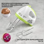 Миксер Scarlett SC-HM40S05, облаченный в легкий пластиковый корпус симпатичного бело-зеленого цвета, поможет решить множество задач при приготовлении блюд. С его помощью можно взбить сливки или яичные белки до устойчивых пиков, приготовить соус с идеальной консистенцией, замесить тесто для блинов и многое другое. Мотор мощностью 300 Вт превосходно справляется с замешиванием и перемешиванием. Семь скоростных режимов работы позволят выбрать наиболее подходящую скорость в зависимости от желаемого результата и рецептуры.