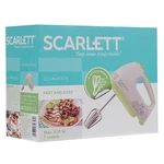 Миксер Scarlett SC-HM40S05 укомплектован двумя парами насадок: венчиками и крюками для замешивания теста. Они легко отсоединяются от корпуса прибора одним нажатием кнопки. Возможность отсоединения насадок также способствует компактному хранению устройства: в кухонном шкафу оно займет минимум места.