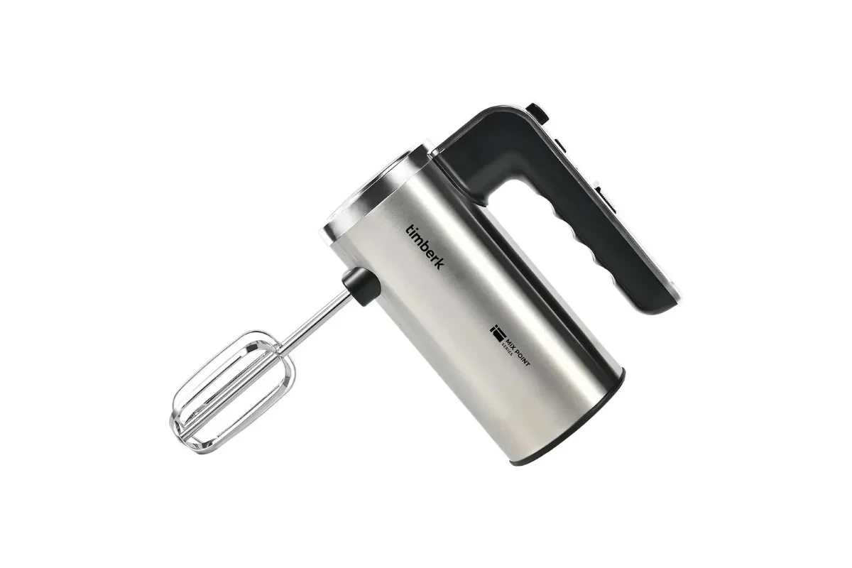 Миксер Timberk 500 Вт, 5 скоростных режимов, режим Турбо, подставка для хранения прибора и насадок, 2 венчика и 2 крюка T-HM40S49 предназначен для бытового применения.