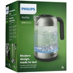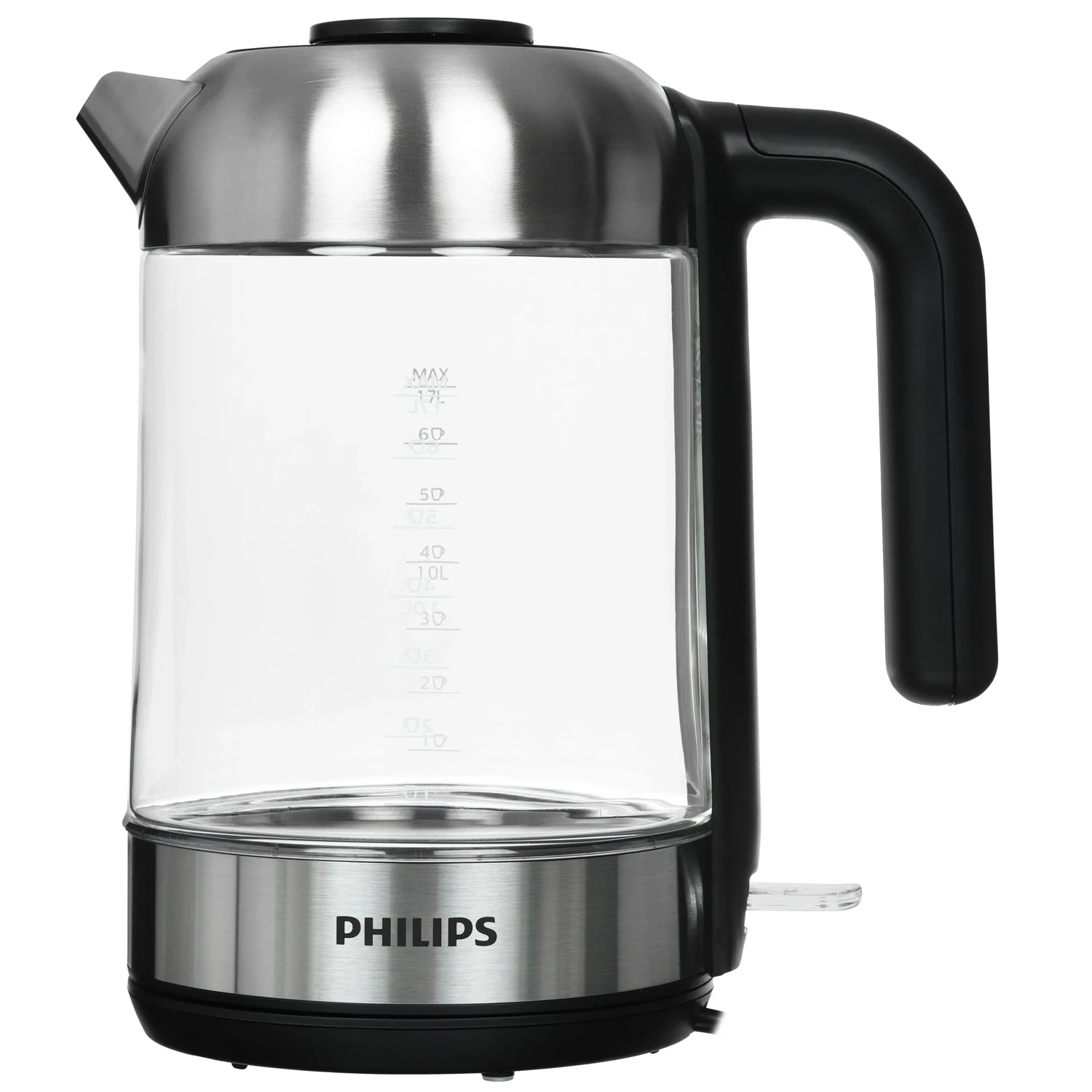 Электрочайник Philips HD 9339 с серебристым металлическим корпусом предназначен для использования на домашней кухне и рассчитан на кипячение воды объемом до 1.7 л. Кухонный электроприбор оснащается скрытым нагревательным элементом из нержавеющей стали для увеличения коррозионной стойкости. На полностью прозрачной стеклянной колбе чайника предусмотрена мерная шкала для оценки объема налитой внутрь воды.