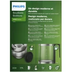 Съемная крышка упрощает налив воды в электрочайник Philips HD 9339. Разливаемая по кружкам горячая вода проходит через сетчатый фильтр из нейлона в носике, который решает задачу улавливания частиц накипи. Чайник получает функцию автоотключения при отсутствии воды внутри колбы или слишком низком уровне воды. Он устанавливается на вращающейся подставке с нескользящими ножками, из которой выходит сетевой шнур длиной 0.75 м для подключения к розетке.