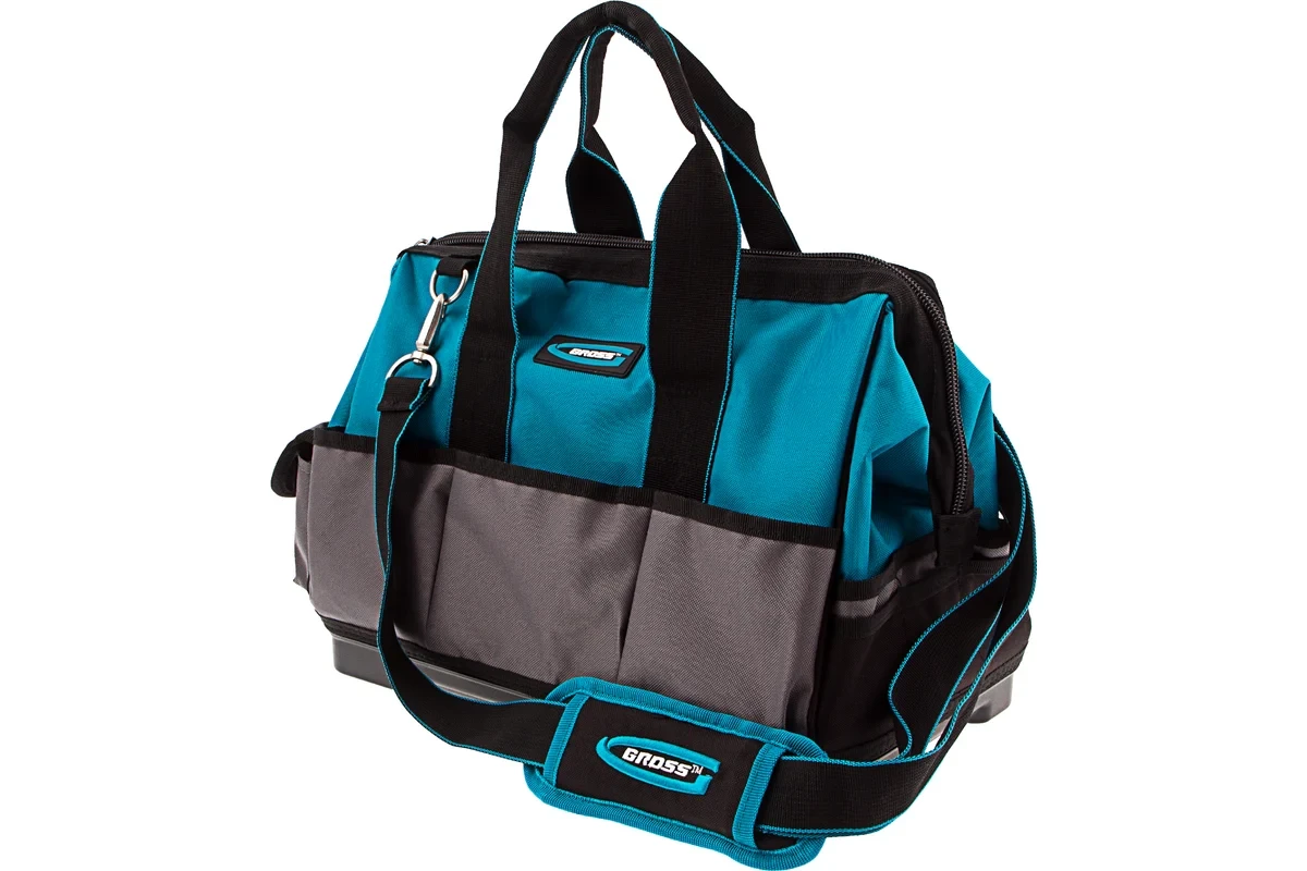 Сумка для инструмента Gross Handwerker 90272 габаритами 400 х 225 х 310 мм, с 26 карманами, пластиковым дном и наплечным ремнем, будет полезна слесарям, монтажникам, электрикам, а также автомобилистам. В основном отделении, внутренних и внешних карманах поместятся все необходимые инструменты.