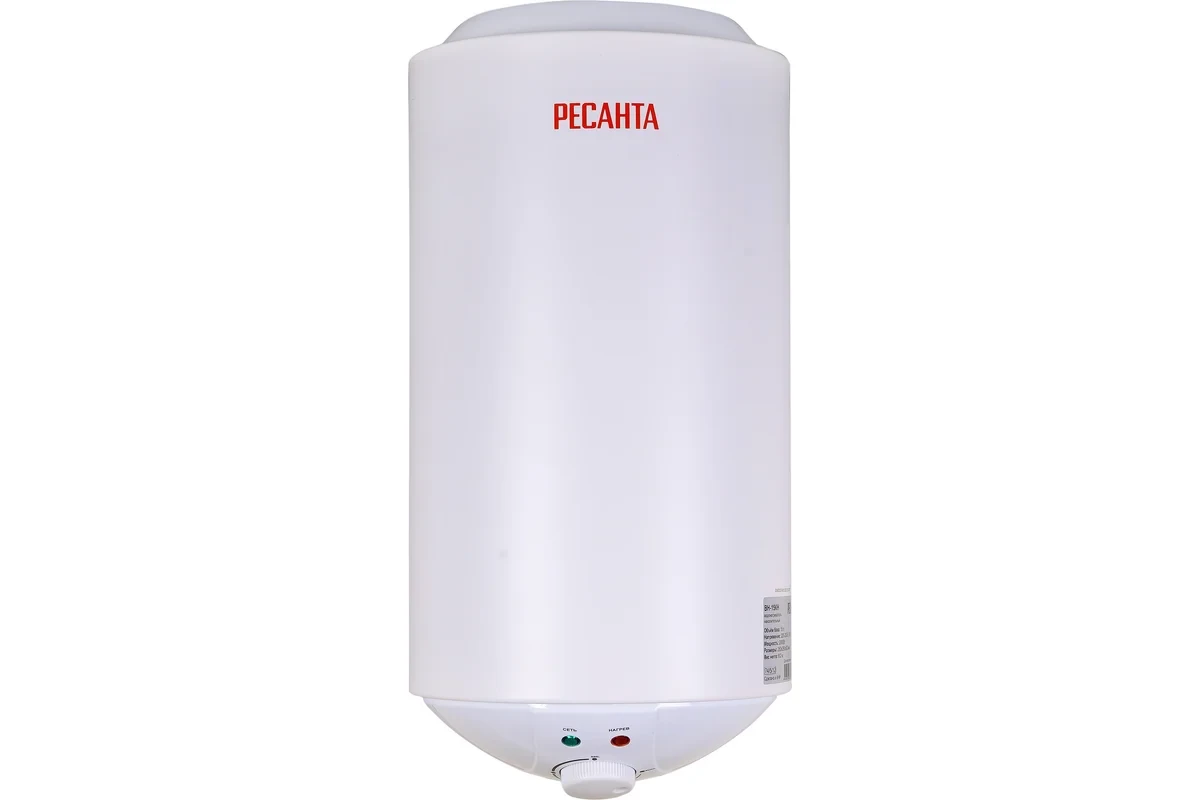 Компактный накопительный водонагреватель Ресанта ВН-15КН оснащен баком объемом 15 л. Этот объем подойдет для 1 человека или небольшое потребление на семью. Мощность ТЭНа 2 кВт обеспечивает высокую скорость нагрева воды до 75° C за 28 мин. Бойлер оснащен магниевым анодом, защищающим ТЭН от коррозии и известкового налета при контакте с водой. Нижний тип подводки предполагает установку водонагревателя над мойкой, так как патрубки направлены вниз. Диаметр резьбового отверстия для подключения воды равен 1/2 дюйма. Нагревательный элемент имеет надежную теплоизоляцию. Функция аварийного отключения предотвращает его перегрев и обеспечивает длительный срок службы.