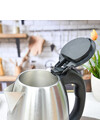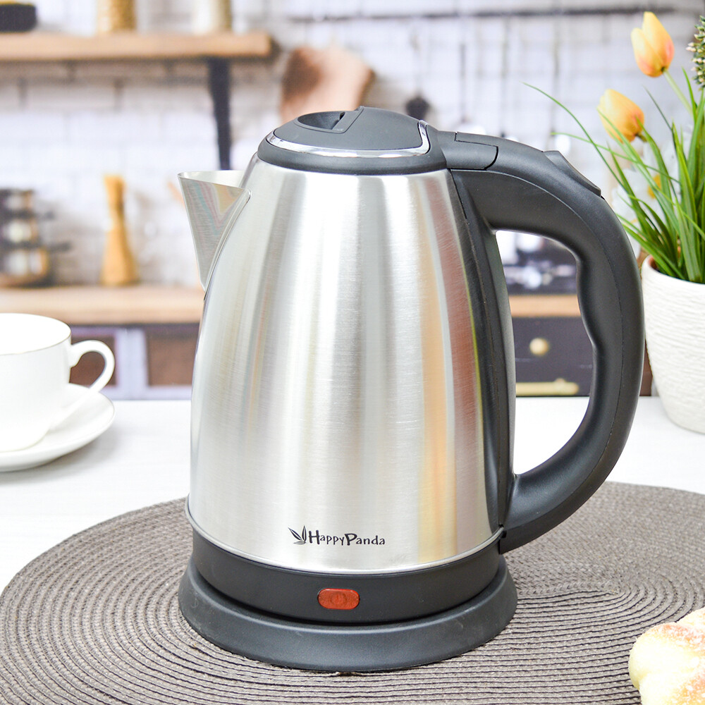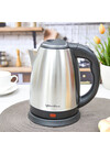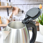 Чайник электрический, 1.8 л, 1800Вт, нержавеющая сталь, дисковый нагревательный элемент, отключение при закипании/без воды, индикатор работы, вращение на 360°. Цвет: матовая нержавеющая сталь + чёрный. Длина шнура 0,6м.