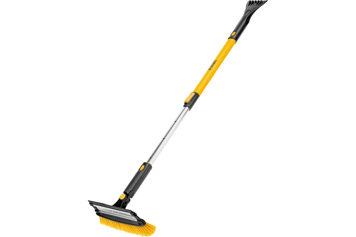 -Регулировка длины — рукоятка выдвигается и фиксируется на длине 900-1200 мм, за счет чего можно без труда очистить крышу транспортного средства.