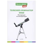 Телескоп рефрактор астрономический настольный детский, подзорная труба, монокуляр, увеличение 90х, Brauberg Kids