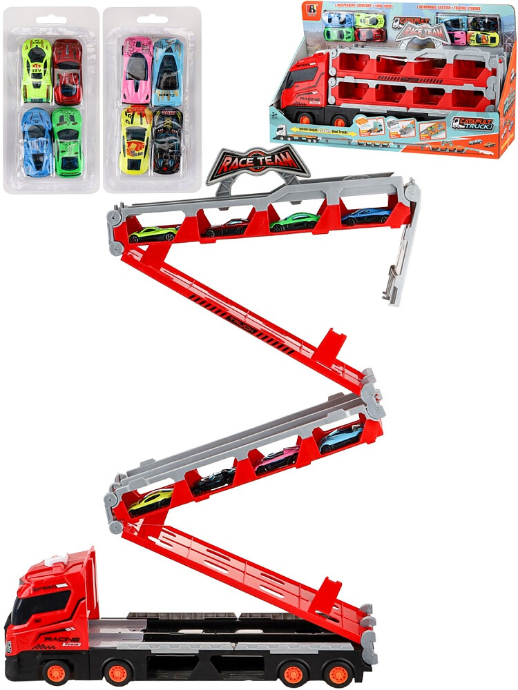 Автовоз выполнен очень реалистично, в комплекте есть 8 машинок.