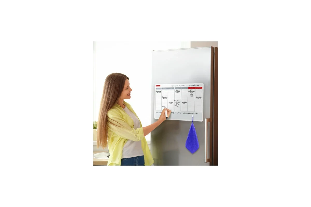 Магнитный планинг BRAUBERG на холодильник на неделю, 42x30 см с маркером и салфеткой 237850 предназначен для записей.