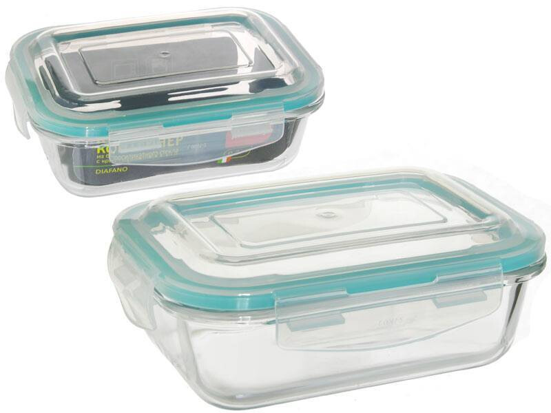 Контейнер стеклянный 650 мл прямоугольный с крышкой Diafano тм Mallony