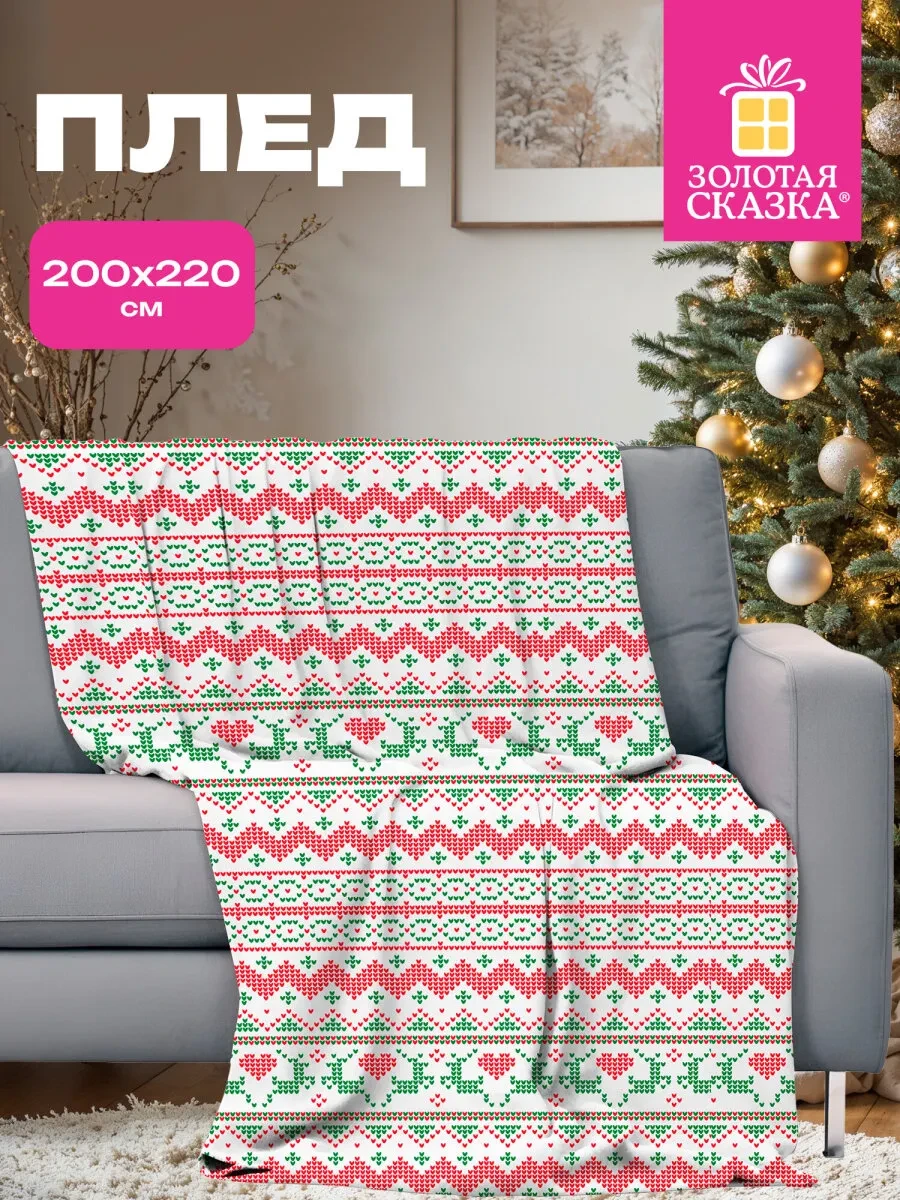 Плед Новогодний 200*220см "Вязаный"полиэстер 210г/м2 ЗОЛОТАЯ СКАЗКА 592533
