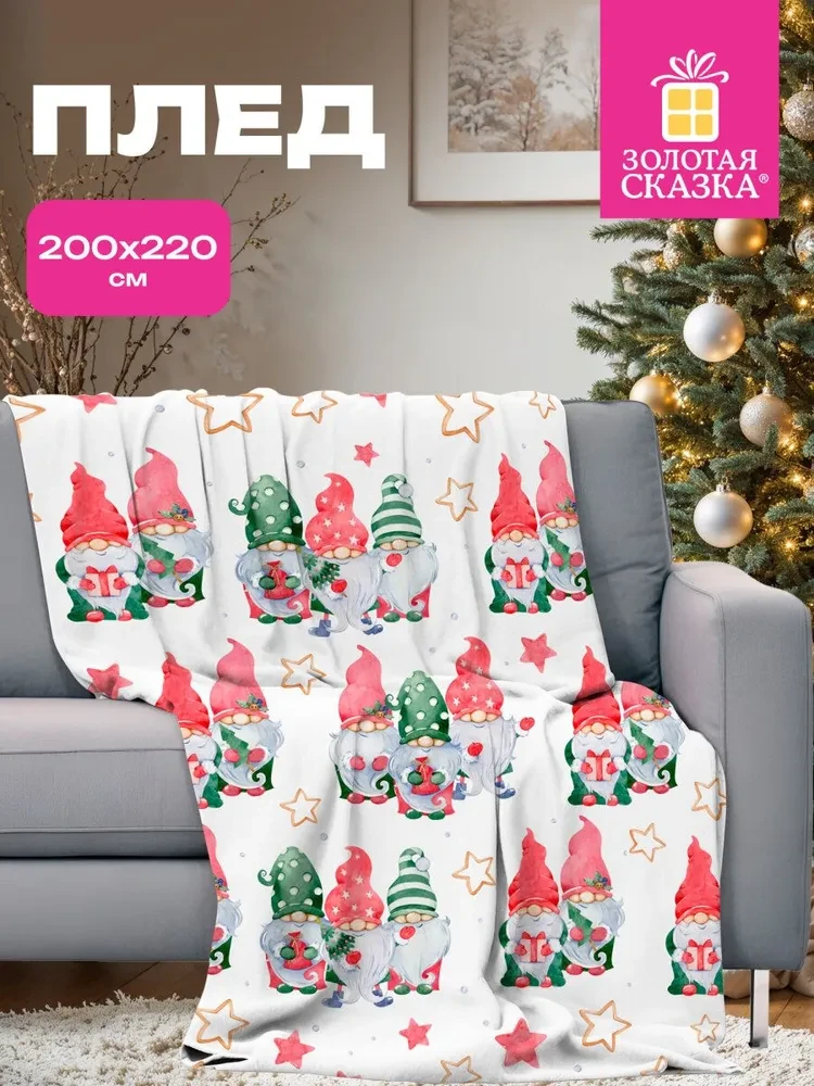 Плед Новогодний 200*220см "Гномики"полиэстер 210г/м2 ЗОЛОТАЯ СКАЗКА 592532