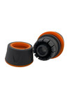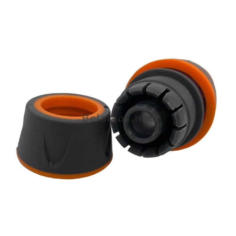 Соединитель шланга 3/4" с универсальным быстросъемным штуцером. Пружинный фланец и зажимная гайка шланга выполнены из мягкого пластика.