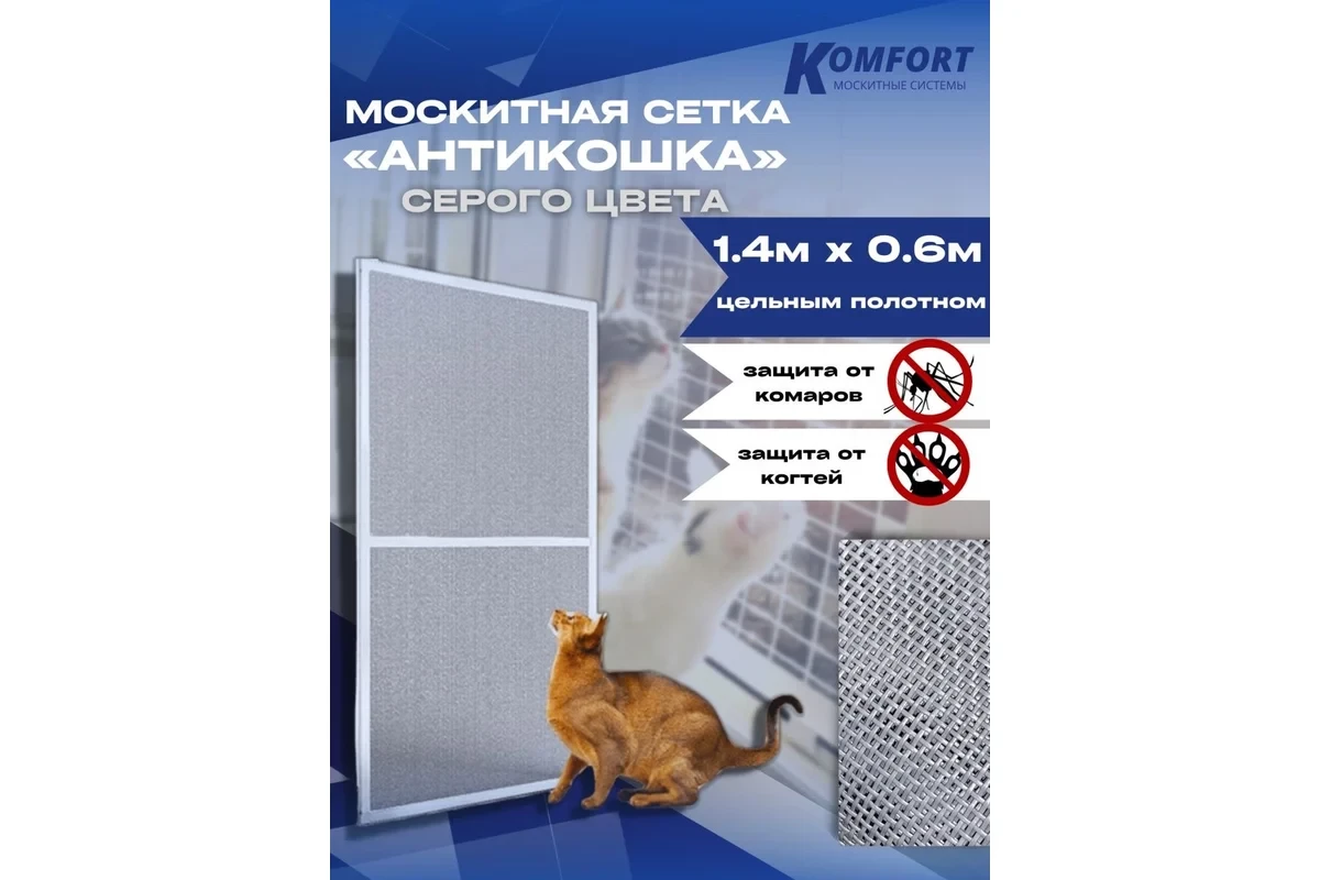 Москитное полотно Антикошка, оно же PetScreen, изготавливается из специальных нитей на основе полиэстера с пропиткой и имеет в 7 раз большую прочность по сравнению со стандартной антимоскитной сеткой. Устойчиво к воздействию когтей домашних животных (кошек, собак, грызунов и птиц) и не травмирует подушечки лап.