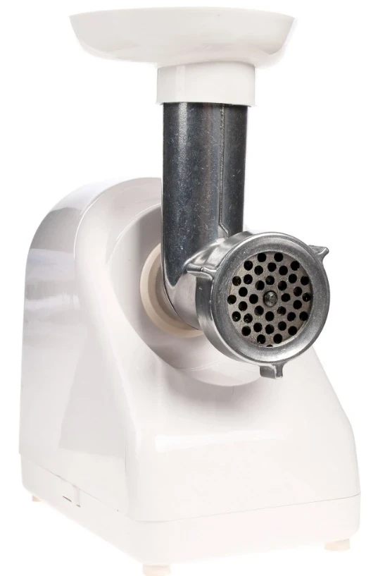 Переработав 600 грамм в минуту, эта модель потребит максимум 1 000 Ватт. Пластиковый лоток практичен, а корпус, изготовленный из экологичного пластика с металлом, долговечен и легок. В коробке с этой мясорубкой вы обнаружите две дополнительные насадки: для самостоятельного изготовления различных колбас и для любителей мучных изделий. Благодаря этим насадкам "Помощница 23" становится действительно универсальной помощницей.