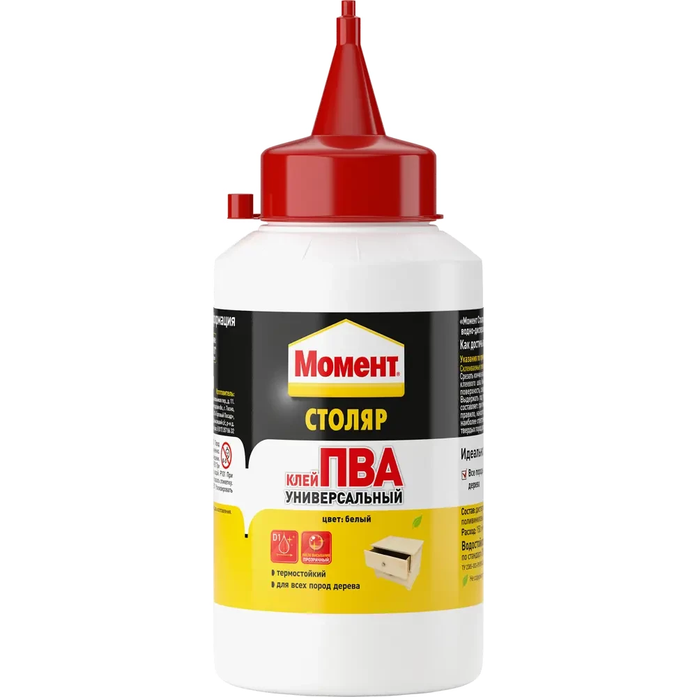 «Момент Столяр» — универсальный клей, предназначенный для склеивания дерева, кожи, ткани, бумаги, а также некоторых видов пластика. Наличие специальных добавок в составе обеспечивает высокую адгезию. Благодаря моментальному схватыванию, термостойкости и высокопрочности клея, его можно использовать при сборке мебели, укладке ламината, а также в ряде множества ремонтно-строительных работ.