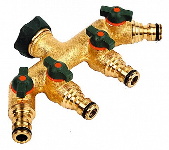 Распределитель RACO "Profi-Plus" четырехканальный, латунный с покрытием TPR, 3/4" 4244-55134D