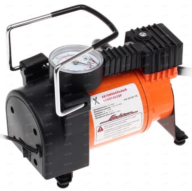 Компрессор для шин Airline X CA-030-18S прослужит вам долгие годы: он оборудован надежным механизмом, а металлический корпус устройства имеет высокую стойкость к ударам. Модель обладает производительностью, равной 30 л/мин: вы за короткое время сможете накачать колеса любого размера. Контролировать давление в шинах и процесс работы компрессора поможет информативный аналоговый манометр. Латунный штуцер очень удобен для подключения к ниппелю колеса: вам не придется пользоваться различными зажимами и другими приспособлениями. Для переноски компрессора используется удобная ручка, пользоваться которой можно даже в теплых перчатках и рукавицах.
