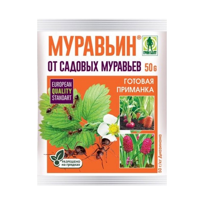 Средство для защиты от садовых муравьев Муравьин, пакет – гранулированный препарат, который быстро решает проблему присутствия вредных садовых муравьев. Средство отличается повышенной безопасностью, уже готово к применению, можно использовать на грядках.