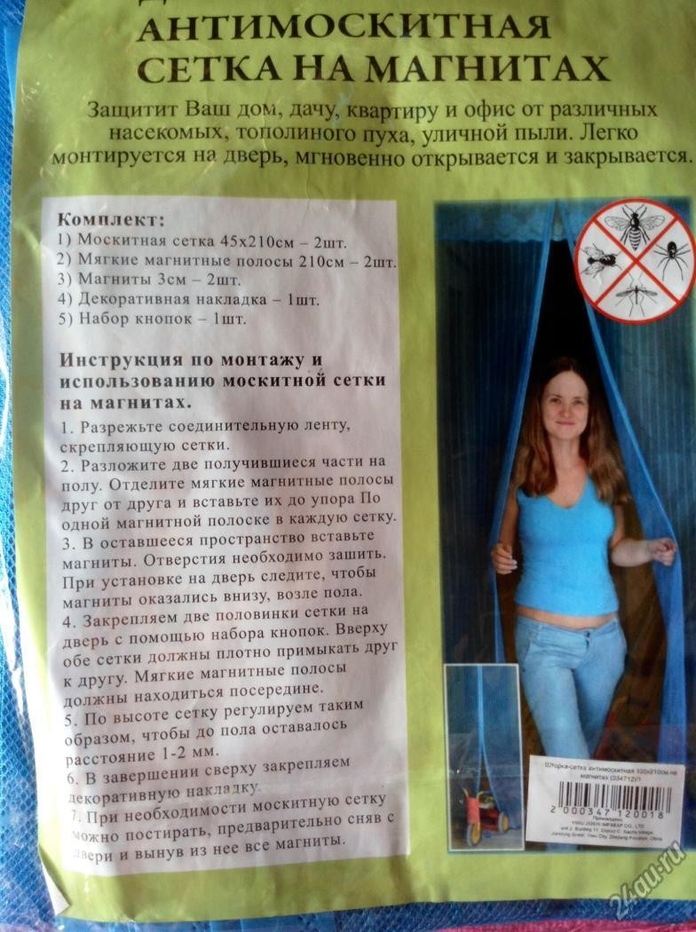 Сетка от насекомых для двери на магнитах 100*210см. "КОМАРАНТИ"