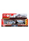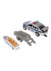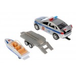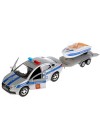 Полицейская машина оснащена съёмным прицепом с размещённой на нём лодкой.