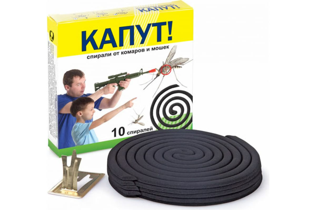 Спирали от комаров Капут 10 шт. 4607043202246 применяются для борьбы с кровососущими и другими насекомыми на открытых участках и в помещениях.