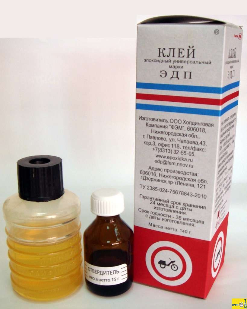 Клей эпоксидный универсальный ЭДП двухкомпонентный — надежное и универсальное средство для склеивания практически любых материалов: металлов, сплавов, стекла, древесины, фарфора, керамики, декоративно-облицовочных материалов и других. (За исключением посуды и предметов, имеющий непосредственный контакт с пищей).