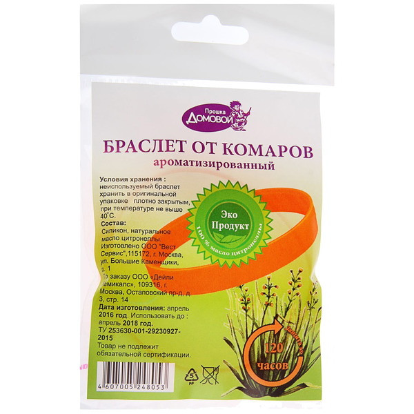 От комар."Домовой Прошка" браслет ароматизированный 1*50