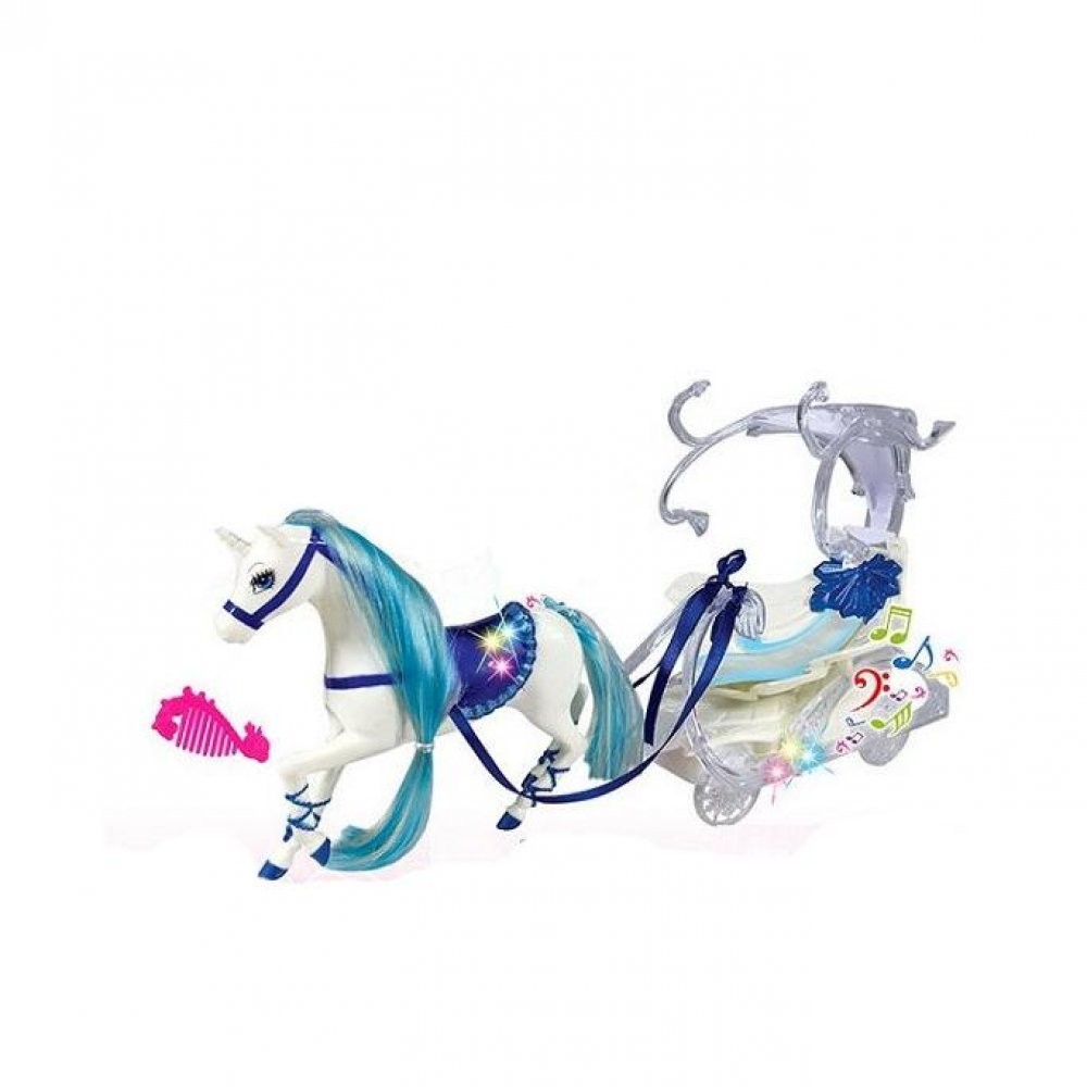 Игровой набор карета с лошадью. Карета оснащена звуковыми и световыми эффектами. В наборе: расческа, которой можно расчесывать гриву лошадки. Возраст-от 3 лет Категория-Кареты, лошади Пол-Девочка Страна регистрации бренда-Китай