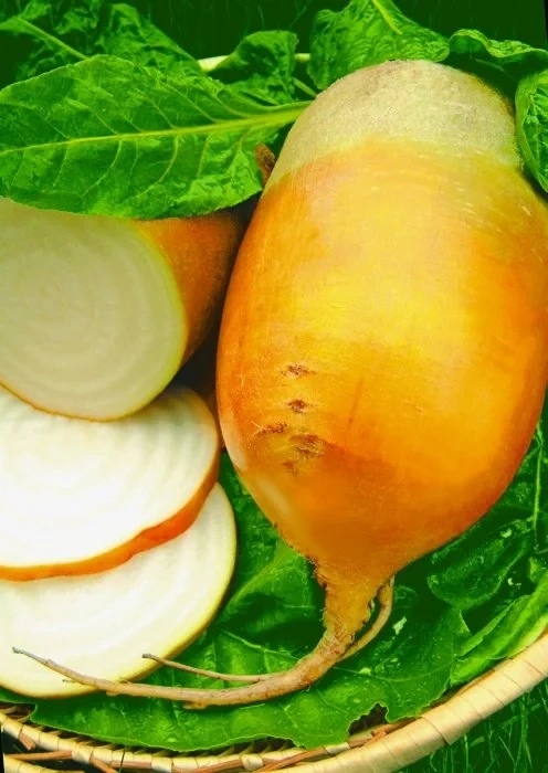 Корнеплод цилиндрический, желтого цвета, длиной 15–20 см, диаметром 8–12 см, массой до 1500 г. Мякоть светло-желтая, сочная. Ценность сорта: холодостойкость, стабильная урожайность, выравненность корнеплодов, устойчивость к болезням и цветушности.