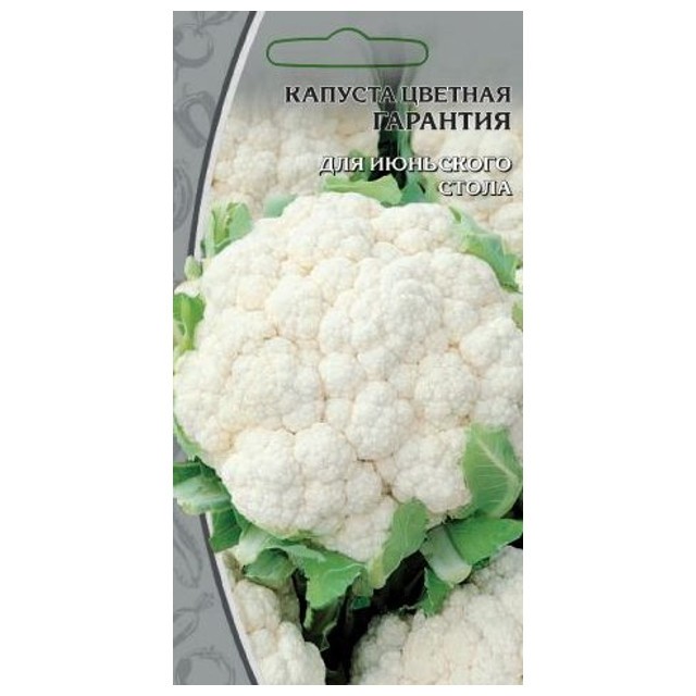 Капуста Цветная Гарантия. Скороспелый (70-98 дней) сорт универсального использования, для открытого и защищенного грунта. Головка округло-плоская, мелкозернистая, плотная, массой 0,8-1,2 кг, белая с кремовым оттенком. Ценность сорта: высокая урожайност...