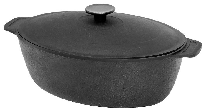 Материал-чугун Подходит для индукционных плит-да Объем-8 л Длина-28.8 см Ширина-15.8 см Высота стенок-14 см Толщина стенок-3.5 мм Толщина дна-4.3 мм Вес-6.4 кг Особенности-использование в духовке, крышка в комплекте