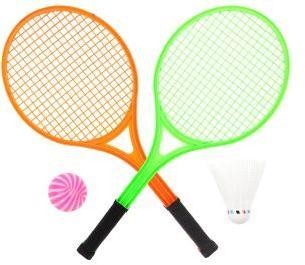 В наборе - 2 ракетки длиной 52,5 см, волан и мяч. Материал изготовления: пластмасса. Рекомендованный возраст: 3 года +