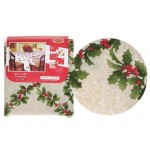 Скатерть новогодняя 150*220см бежевая с зеленым рисунком СК-08